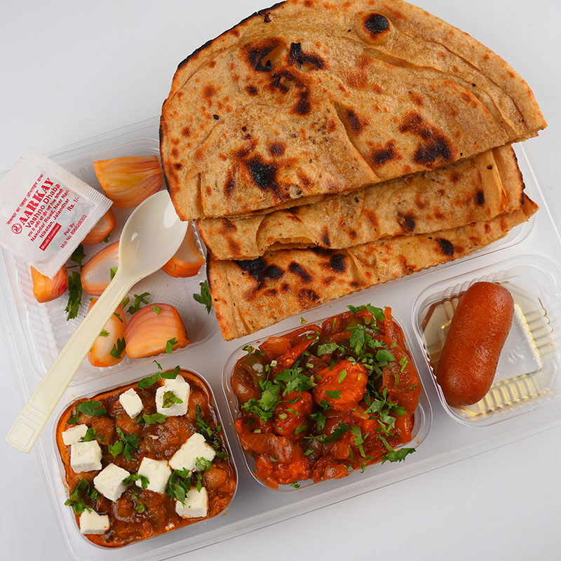 Paneer, Dal, 2 Parantha, Salad, 1 Gulab